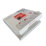 De dozen zijn gemaakt van stevig karton, waardoor de pizza veilig en warm blijft tijdens transport. Het duurzame materiaal biedt stabiliteit en bescherming tegen beschadiging. Dankzij het praktische formaat zijn de dozen eenvoudig stapelbaar en passen ze perfect in takeaway tassen of op transportwagens.