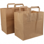 Je kan snacks, frites en ander afhaalmaaltijden meegeven in deze handige papieren snacktas.